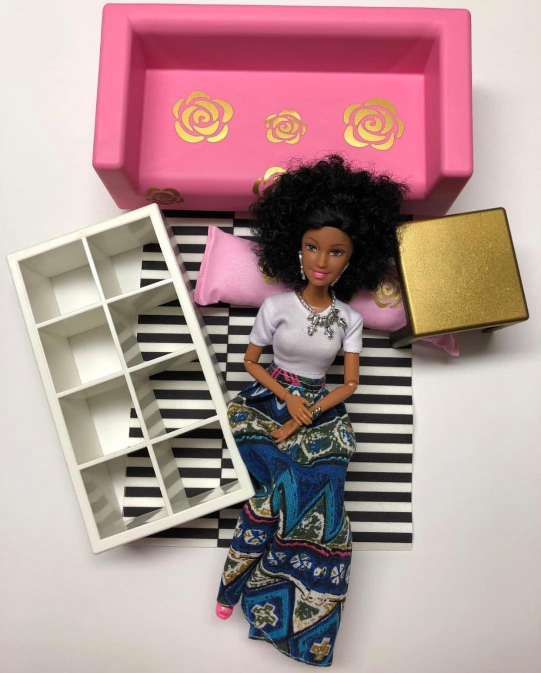 Now lets talk about what I did to this beautiful doll furniture. The couch which generally comes with a cover, has the cover removed and cute vinyl flowers. I made a pillow with the matching flowers and spray painted the side table from its normal green color, to a beautiful shimmery gold. This is an awesome gift set, with the holidays right around the corner. Check out the shop tab to view on my Etsy store.